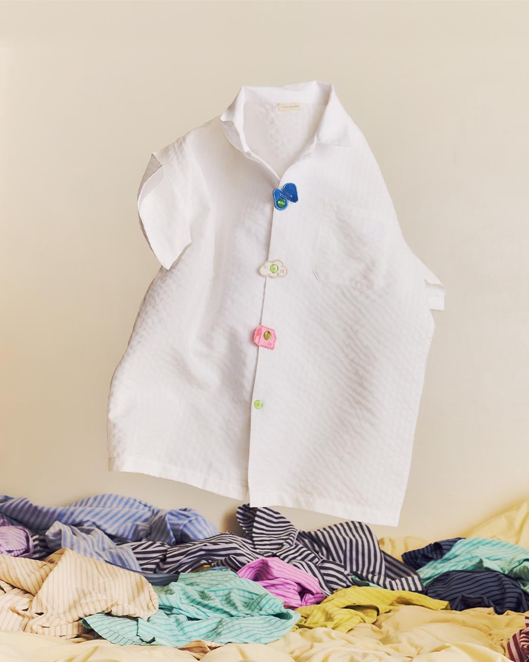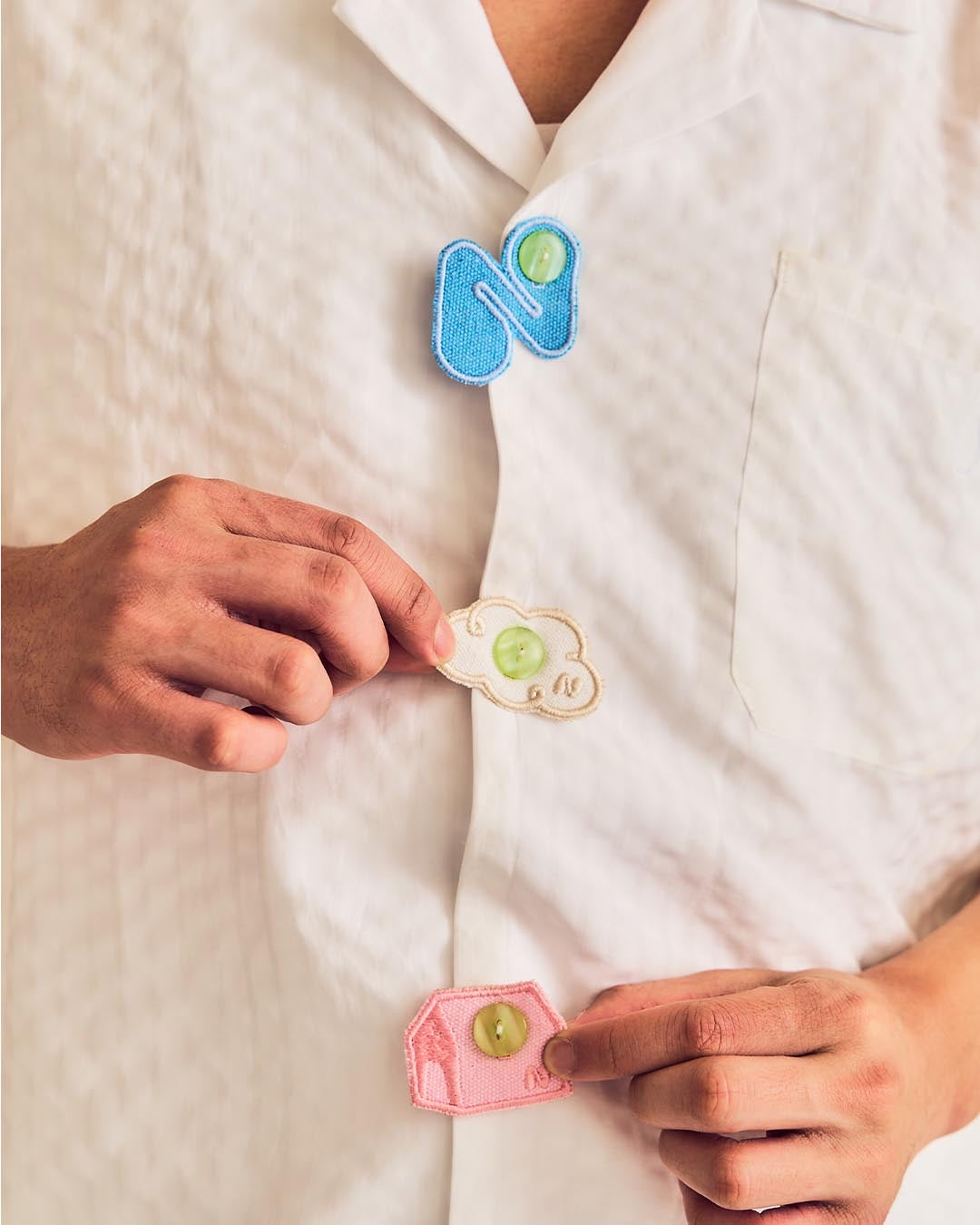 Attach them onto any of our tops, shopper bags, or anything you already own with buttons. They’re designed to give any old button-down a playful, fresh twist.