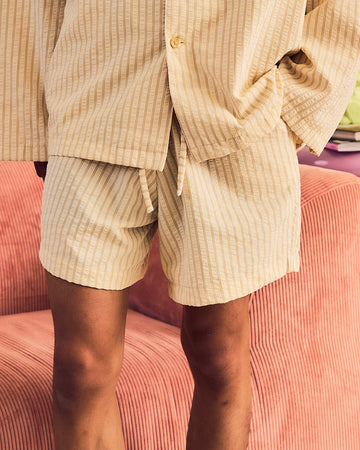 Our new pajama shorts in Moon Beam. Designed to fit loose, take your normal size.