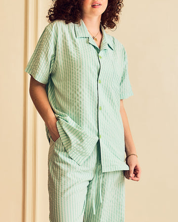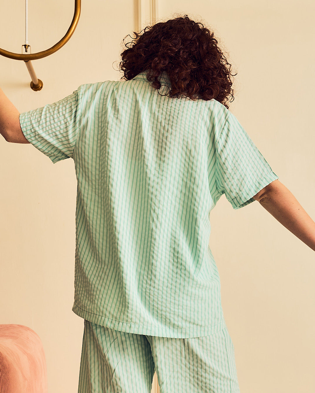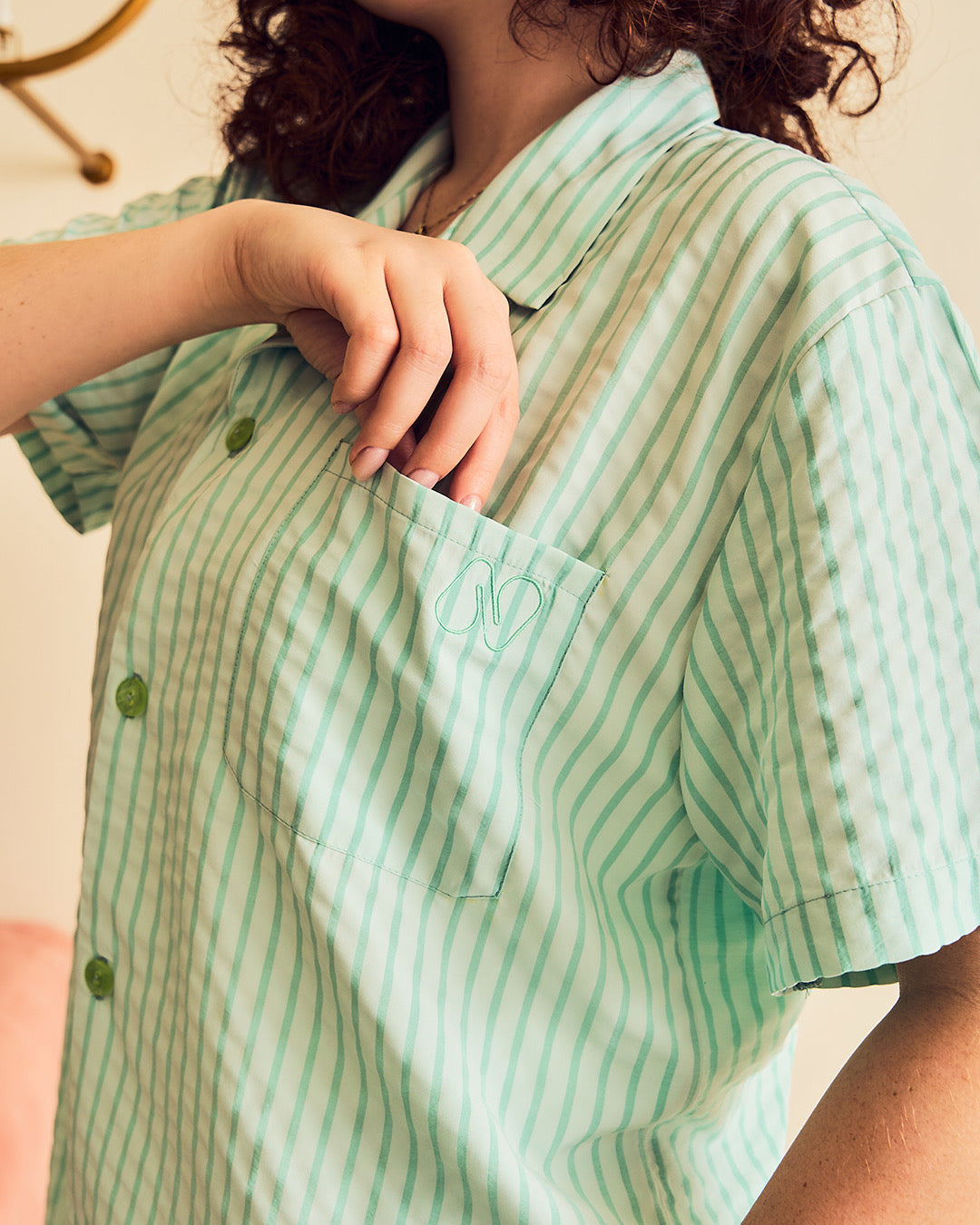Our new short sleeve pajama top in Lost Sock. Designed to fit loose, take your normal size. Sophia is wearing a size S.View Fitting Guide & FAQ here. Care Instructions: