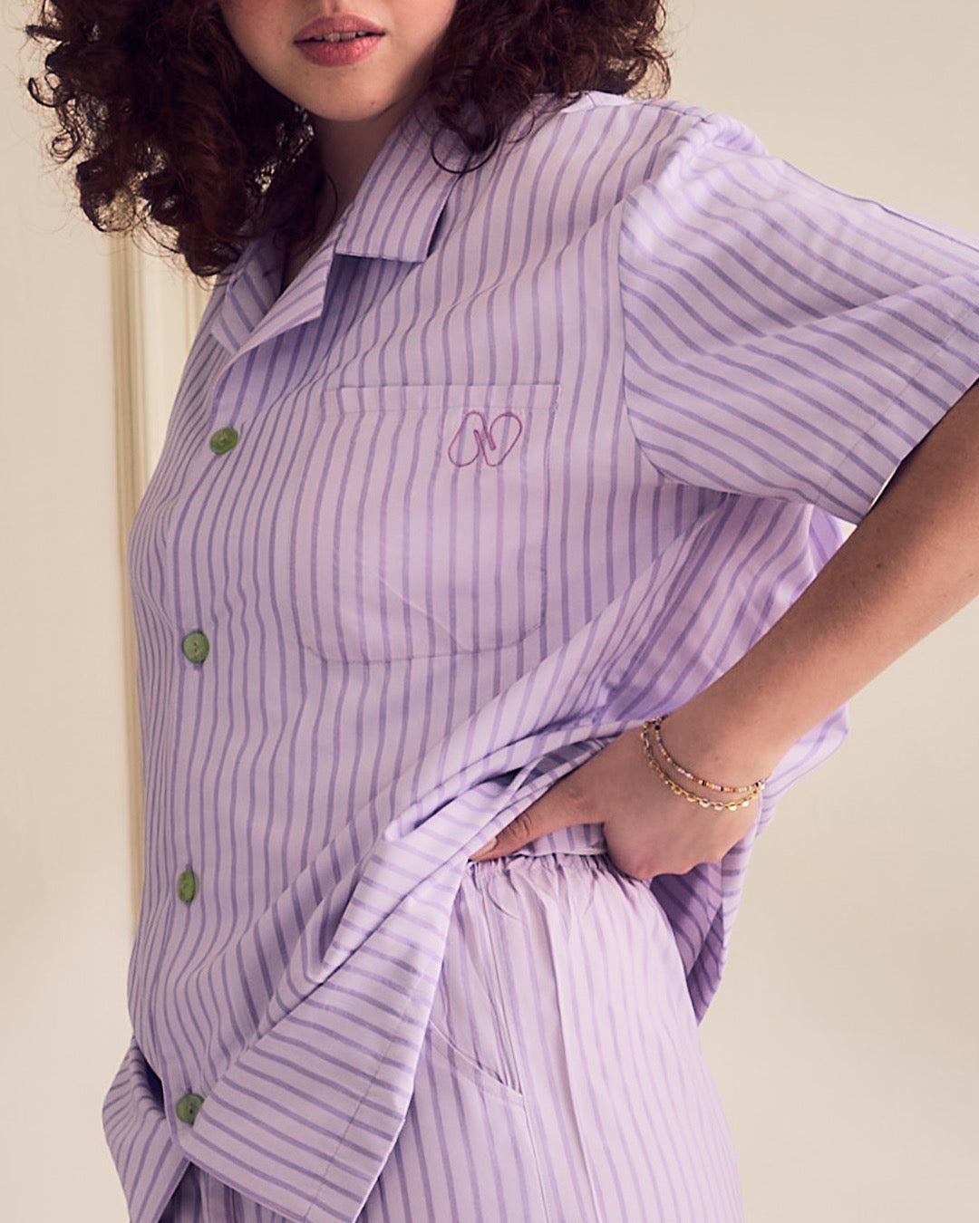 Our new short sleeve pajama top in Snooze Button. Designed to fit loose, take your normal size. Sophia is wearing a size S.View Fitting Guide & FAQ here. Care Instructions: